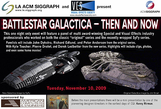 A panel discussion on the Special and Visual Effects of Battlestar Galactica. Moderators: Gene Kozicki & Dan Curry.