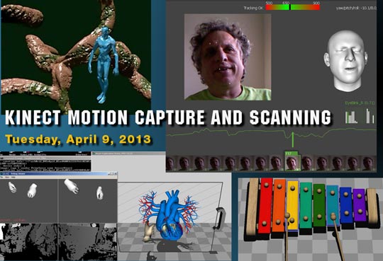 The Kinect is capable of capturing performances without markers or motion capture suits. It's also capable of scanning objects in real time, creating 3D data on the fly. Through live demonstrations of real-time 3D scanning, motion capture and facial capture, we will demonstrate the capabilities of this new device.